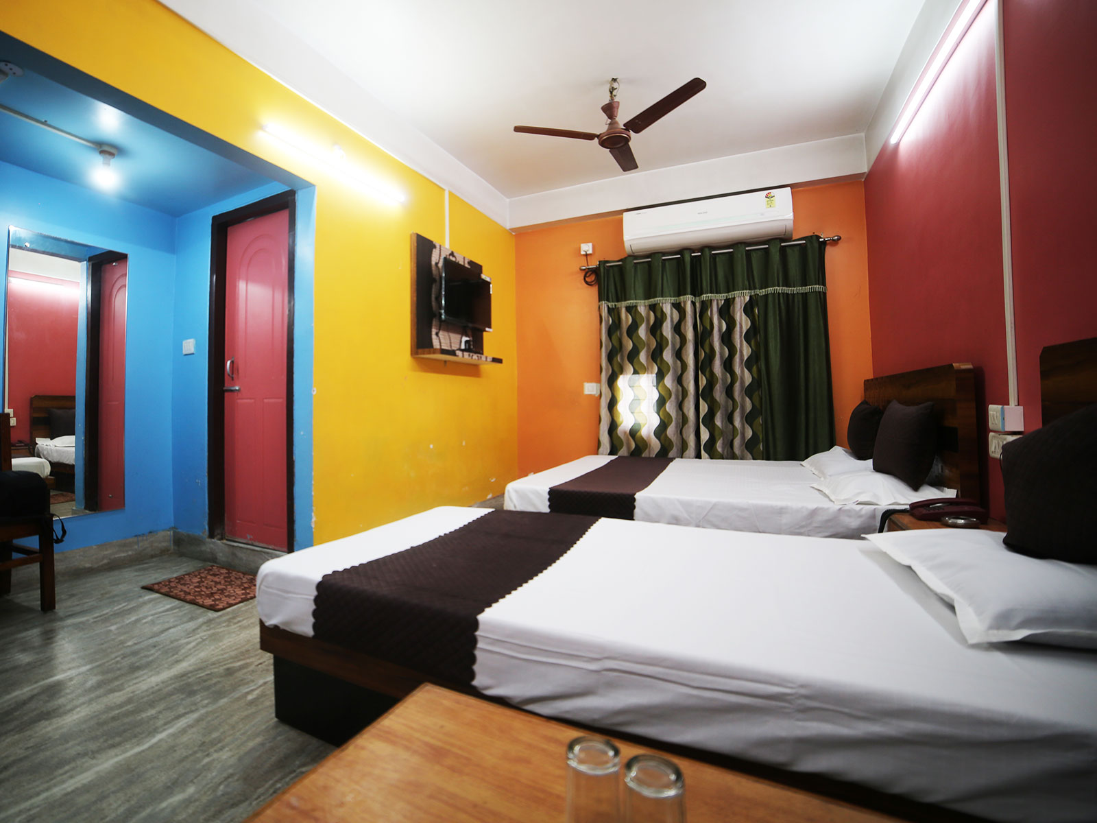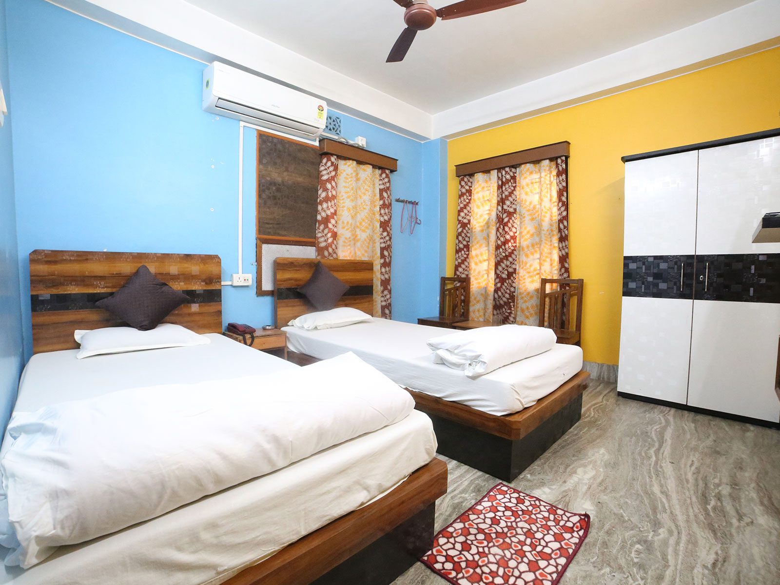 Choose to stay in our thoughtfully made triple bedroom filled with all the necessary amenities for a relaxing stay. The room features a queen-sized bed and a single bed, a sitting area, free Wi-Fi, and an attached bathroom. Guests can also upgrade to a more pleasant room atmosphere with Air Conditioning services at a minimal cost.
